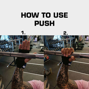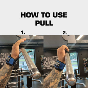 Vid dragövningar lindar du gummit runt stången och håller handen mot gummit och stången, vilket eliminerar behovet av flera varv som med traditionella dragremmar. Vid pressövningar placerar du gummisidan i handen för bättre grepp och skydd.